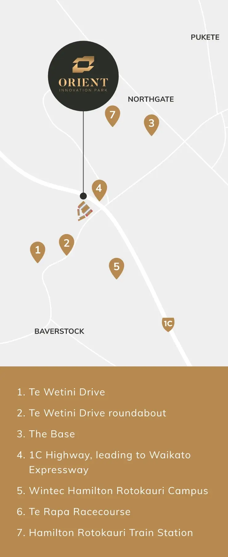 - Orient Innovation Park has easy access to the Waikato Express Way network and the Hamilton-Auckland train park and ride station